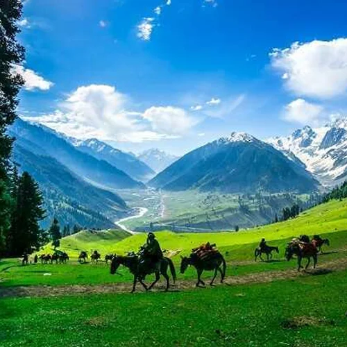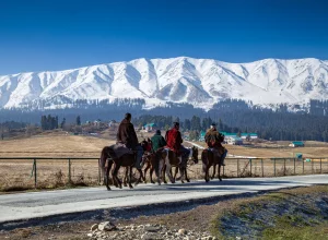 Explore Kashmir's scenic hill stations on horseback. Let the gentle rhythm of the horses' hooves guide you through lush landscapes, providing a timeless and memorable journey.